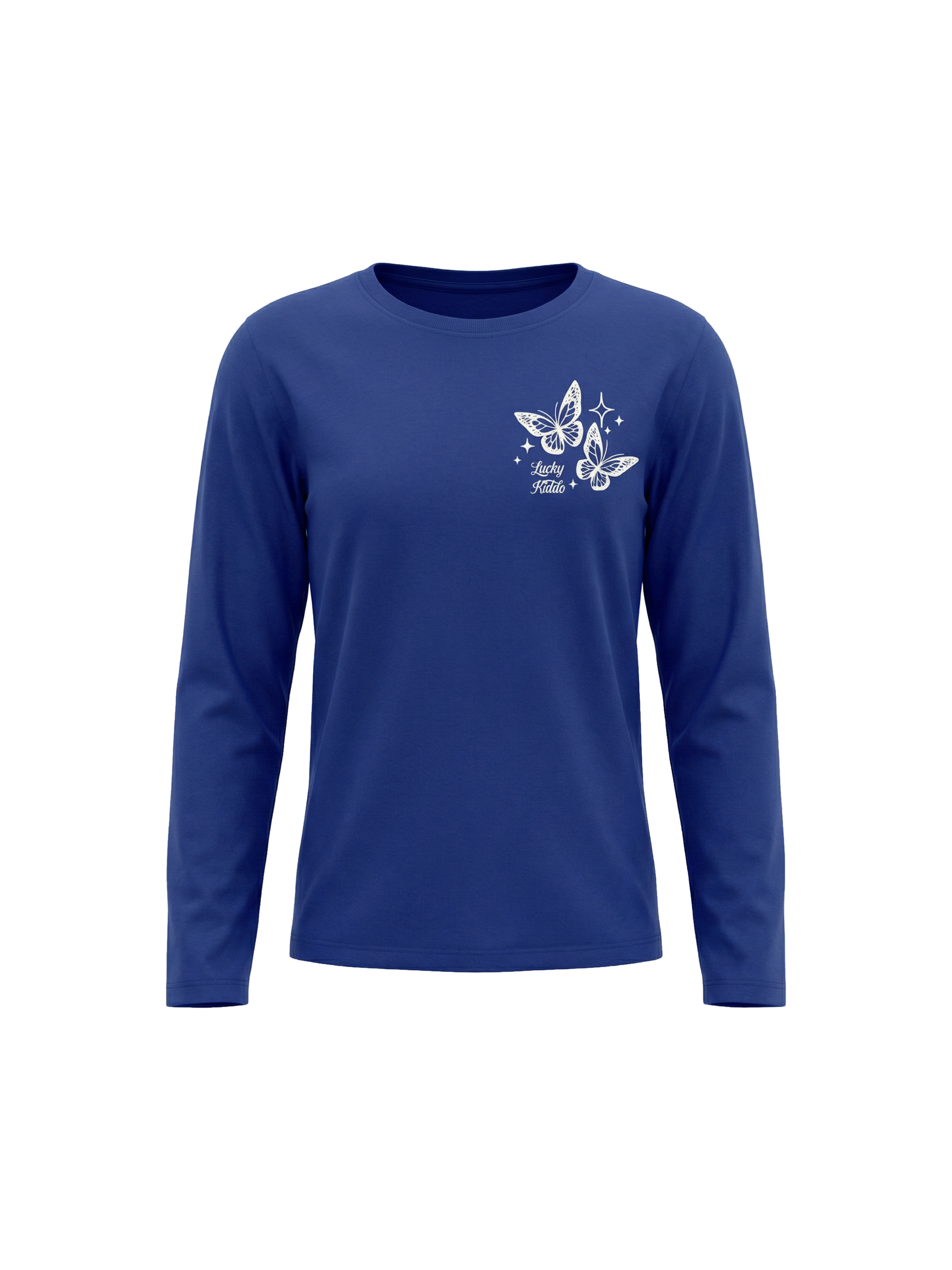 Toto modré dívčí tričko s dlouhým rukávem je jako stvořené pro malé snílky. Přední stranu zdobí nádherný pohádkový motýlek, který zve do světa fantazie a barevných dobrodružství.