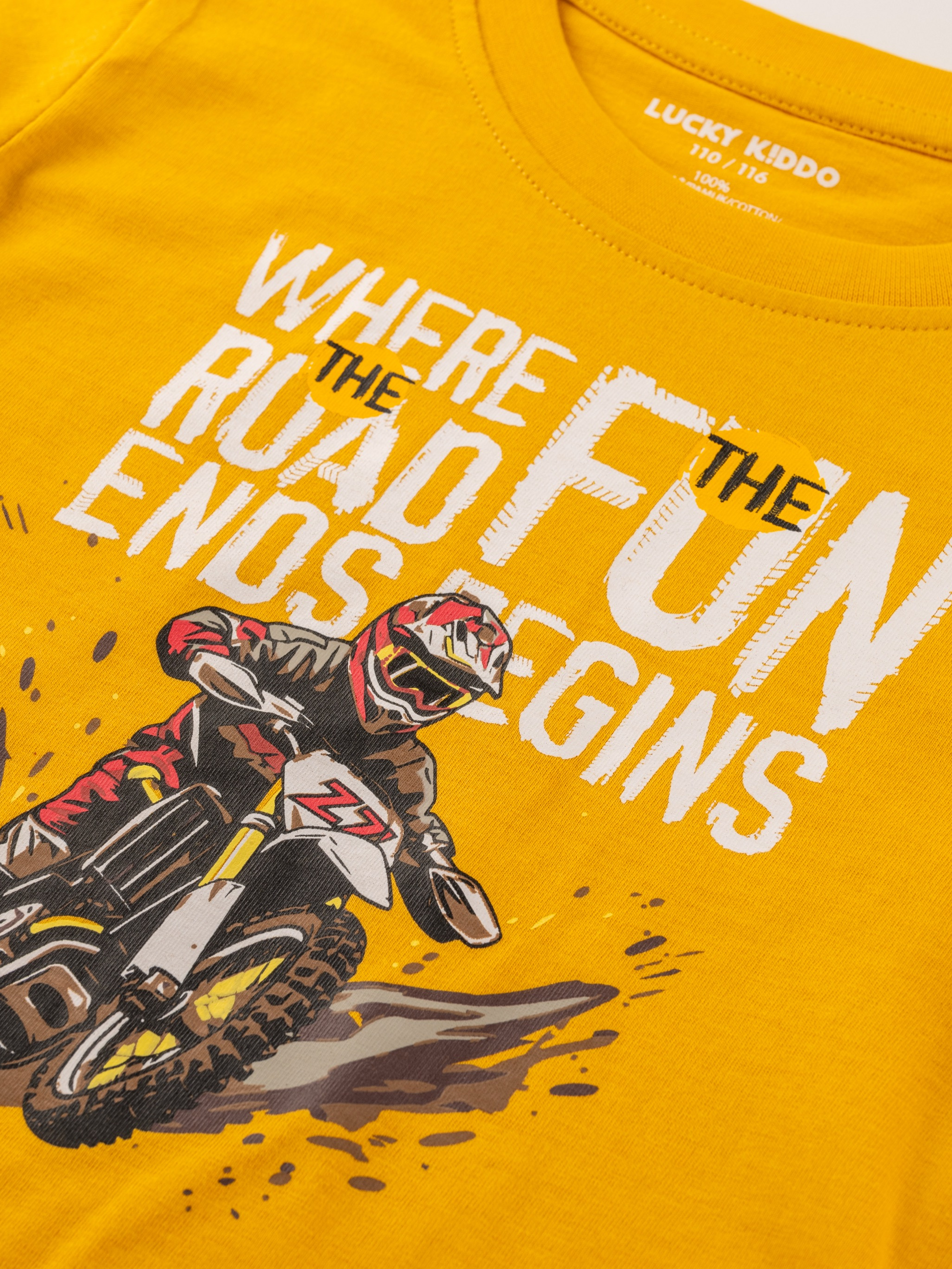 Toto tričko Lucky Kiddo je jako stvořené pro všechny malé závodníky a milovníky motorek! S živým potiskem a pohodlným střihem bude s ním na každém kroku – ať už jde o divoké závody na hřišti, nebo o legrační kousky doma v obýváku. Měkké, odolné a plné adrenalinu – jako opravdový motor, který se nikdy nezastaví!